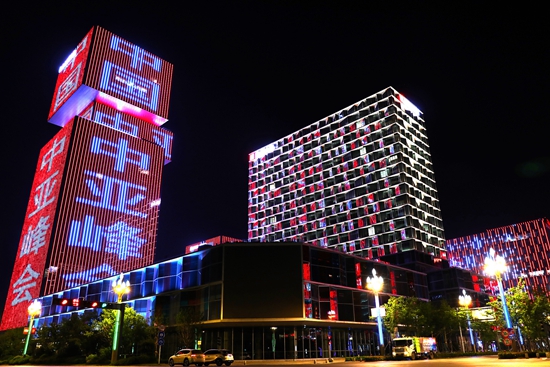 5月15日,中国西安,一处楼群亮灯迎接“中国-中亚峰会”召开。图片由视觉中国提供