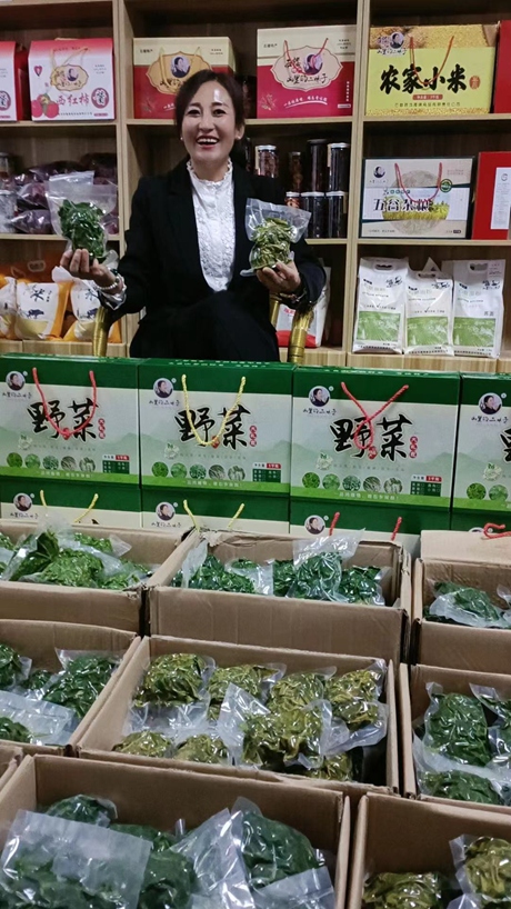 •     “山里的二妹子”店主刘燕红在店里直播带货农产品。团山西省吕梁市石楼县委供图