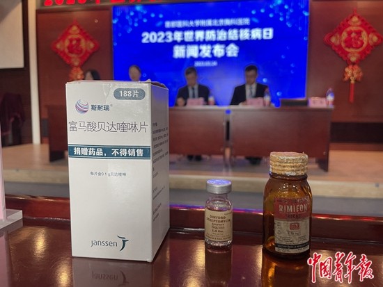 3月24日,北京胸科医院举办的世界防治结核病日新闻发布会现场,摆放着3种治疗结核病的药瓶。最左边的贝达喹啉是1963年以来全球市场上批准的唯一一个抗结核药物。2020年,在北京胸科医院助推下,我国引入贝达喹啉,并于当年上市。位于中间的是链霉素药瓶,这瓶药生产于1949年,可能是世界上最早的链霉素制剂之一。最右边的是异烟肼药瓶,这瓶药生产于1951年,属于临床实验用药,异烟肼成品药于1952上市。异烟肼是迄今为止最有效的抗结核药物之一。