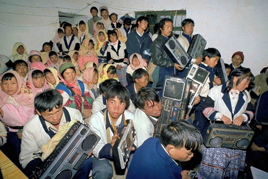 1993年,其他村寨的村民慕名来到小水井村,用四喇叭录音机录下小水井村村民演唱的天籁之音。刘建华/摄