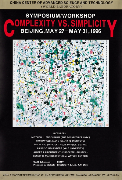 这个主题的来源,又与艺术相关。1996年,中国高等科学技术中心举办了“复杂性对简单性国际学术研讨会”,当时著名艺术家吴冠中受李政道先生邀请创作了科学主题画《流光》,并题诗:“点、线、面,黑、白、灰,这些最基本的元素,营造极复杂的绘画,求证科学:简单与复杂。”
