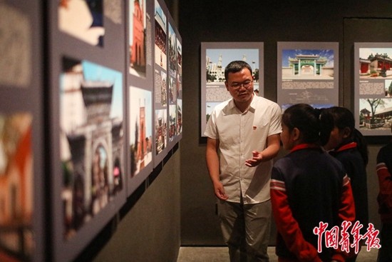 5月20日,新疆和田地区博物馆,31岁的青年教师邓果在为学生讲述和田地区的历史。当天,他和同事带着学生从洛浦县来到和田市进行课外参观和志愿者服务活动,丰富学生的课余生活,增强学生的爱国主义精神。