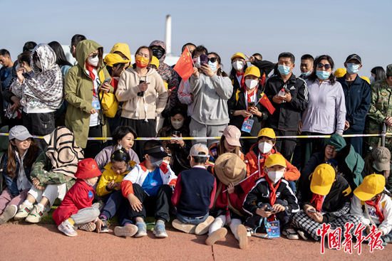 清风吹拂、人潮涌动。从圆梦园到飞天公园,沿途2400多名科技人员、试验队代表、家属、教职工和中小学生,有的挥舞红旗,有的手举标识牌,有的载歌载舞……大家用各自的方式表达对出征航天员的敬意和祝福。