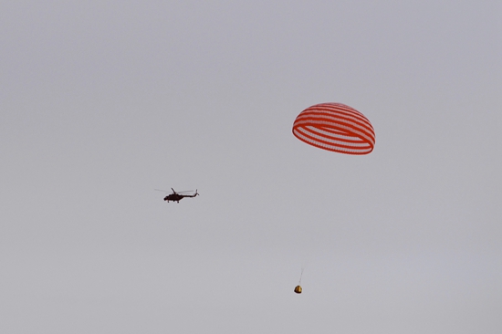 又见红白大伞,护航神舟回家。