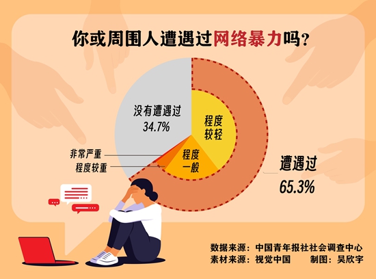 65.3%受访青年表示自己或周围人遭遇过网络暴力