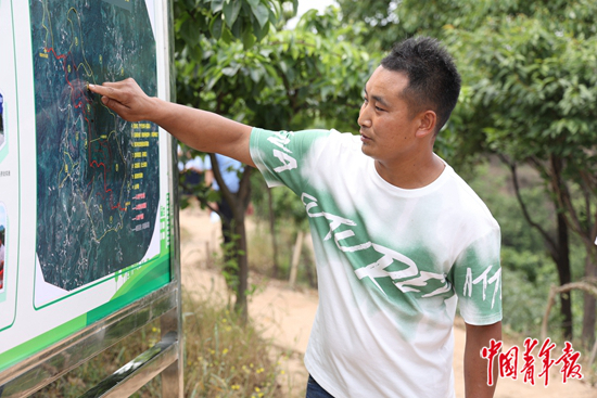 四川宜宾长宁县何玖久家庭农场负责人何松正在向参观者介绍农场的远景规划。农场创办于2015年,流转土地600余亩,形成了以种植业为主、养殖业和休闲农业为辅的生态农场。作为当地大学生创业的典型项目,何玖久家庭农场带动了一批当地青年投身农村创业,为长宁县青年发展型县域试点积累了经验。中青报·中青网记者 王鑫昕/摄