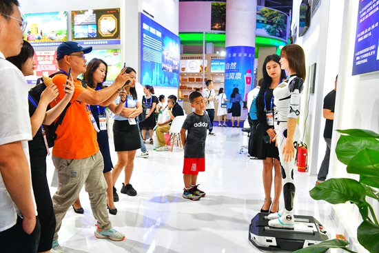 6月29日,第十九届中国西部国际博览会在四川省成都市西博城举行。这是观众在给人形机器人拍照。视觉中国供图