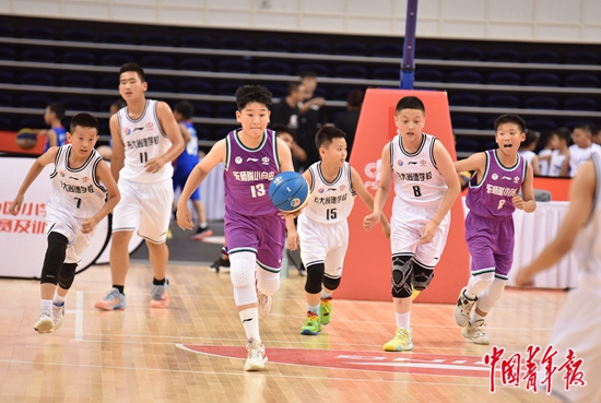 6月29日,长春,2023吉林省小学生篮球联赛比赛中。中青报·中青网记者 慈鑫摄