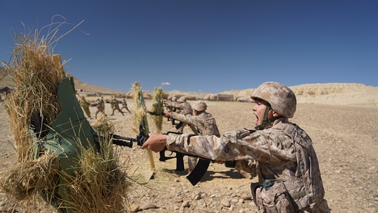 演练现场硝烟弥漫,虽然驻训地域氧气含量不足平原地区一半,担任尖刀任务的九连官兵仍如猛虎一般扑向“敌人”,在“敌”前沿阵地撕开了一道口子。