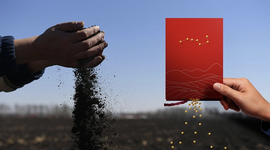 国科大2023本科录取通知书内,包括国产耐盐碱大豆新品种“东生118号”组成的“北斗七星”。国科大供图