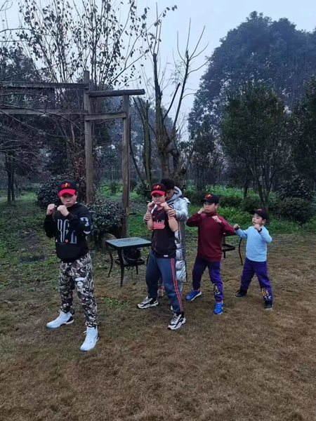 4名棒球少年在进行格斗练习。孙岭峰供图