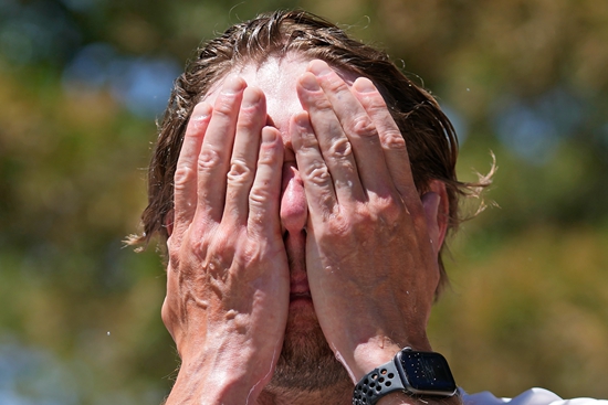 当地时间7月10日,美国犹他州盐湖城,一名慢跑者在喷泉旁降温。视觉中国供图
