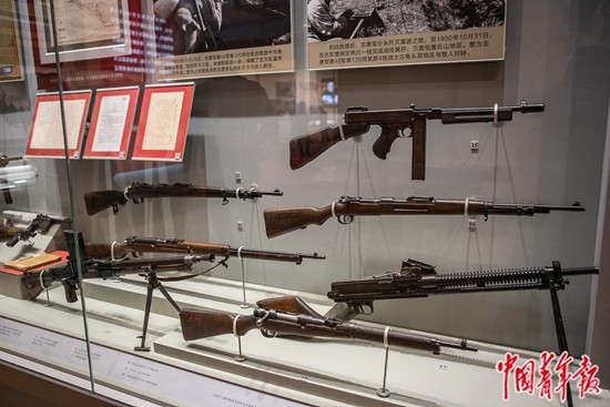 纪念中国人民志愿军抗美援朝出国作战70周年主题展览现场,志愿军在抗美援朝作战中使用的部分武器装备。中青报·中青网记者 曲俊燕/摄
