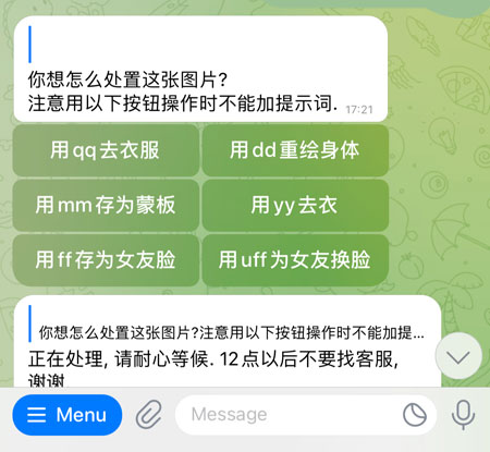在某通讯软件上,一个AI机器人收获了众多用户。它不需要使用者掌握复杂的算法知识,只需要按照其提示,就能完成给照片“换脸”“去衣”等操作。这一机器人还有详细的精细化设置,能像美颜相机一样调整图片的各项参数。