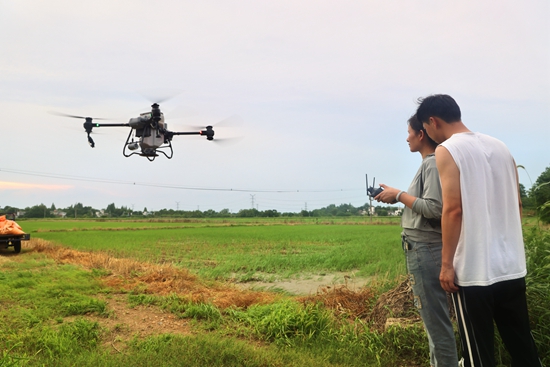 芜湖职业技术学院园林园艺学院师生在芜湖市湾沚区进行无人机植保作业。校方供图