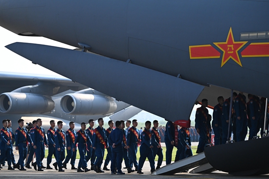 7月19日,在成都某军用机场,空军新录取飞行学员登机。据悉,空军招飞录取数质量创历史新高,今起使用多架运-20运送新飞行学员。余红春/摄(新华社发)
