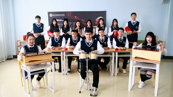 长春早期教育职业学院奥尔夫音乐社团在活动中。管伟/摄