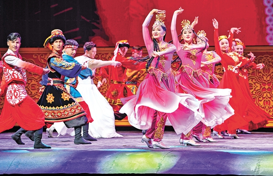 7月20日,演员在第六届中国新疆国际民族舞蹈节开幕式上表演。当日,第六届中国新疆国际民族舞蹈节在乌鲁木齐开幕。本届舞蹈节以“舞动梦想 和美丝路”为主题,千余名艺术家汇聚新疆,切磋舞艺。舞蹈节期间还将举办时尚秀、街舞展演、新疆舞蹈创作交流会等活动。新华社记者 胡虎虎/摄