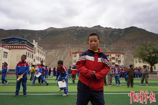 7月13日,西藏昌都八宿县吉达乡中心小学,学生们参加完县疾病预防控制中心组织的碘缺乏病检测后在操场上看书、玩耍。受自然环境及历史因素制约,西藏是中国碘缺乏病高发区和重病区之一,偏远地区农牧民碘缺乏病比较常见。