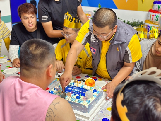 “小哥加油站”的骑手们一起过生日。小哥加油站供图