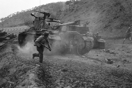 1951年4月24日,江口洞战役中,中国人民志愿军第20军追击逃敌。张崇岫/摄