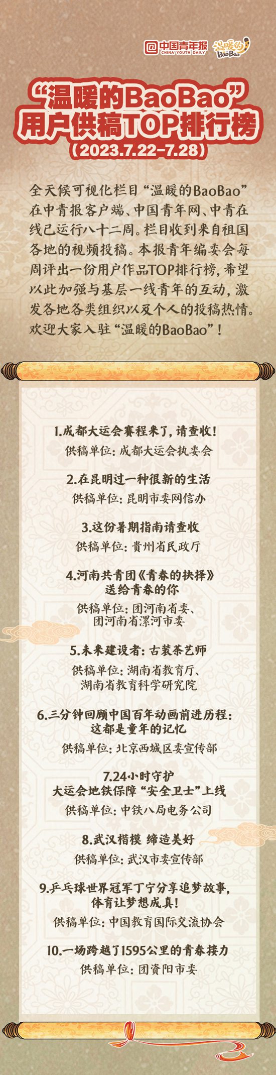 “温暖的BaoBao”用户供稿TOP排行榜(2023.7.22-7.28)