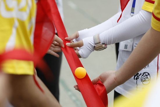 7月17日,贵州省黔东南苗族侗族自治州,三穗县三穗中学,暑期夏令营,孩子们正在进行《珠行万里》游戏。图片由视觉中国提供