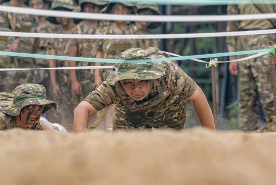 7月18日,江西省新余市,仙女湖区欧里镇昌坊村兵锋国防教育实践基地,青少年通过参加国防教育主题实践活动丰富假日生活,在障碍穿越训练中磨练意志、强健体魄,提高综合应变能力和素质。图片由视觉中国提供