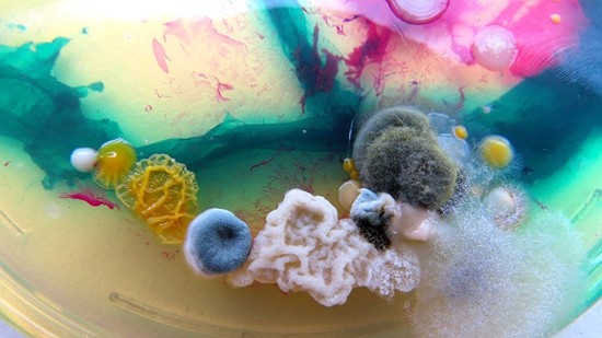 2021年3月,俄罗斯莫斯科,摄影师Daria Fedorova在自己家中培养了这些霉菌和细菌,特写照片看起来就像外星球色彩斑斓的风景。视觉中国供图