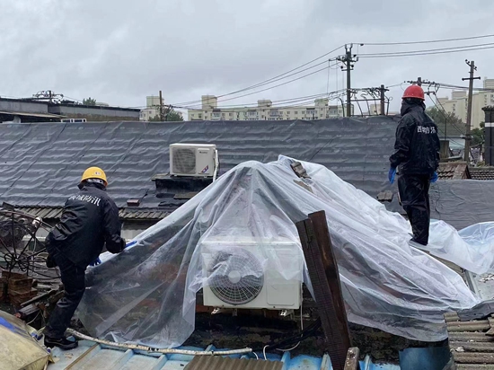 北京市西城区,防汛人员在平房区作业。受访者供图