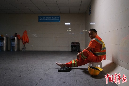 7月29日,北京市西城区一处地下通道内,防汛工作人员坚守岗位。他们时刻关注雨势,为防止雨水倒灌地下通道,准备好了抽水泵,为市民出行提供安全保障。中青报·中青网见习记者 田嘉硕/摄