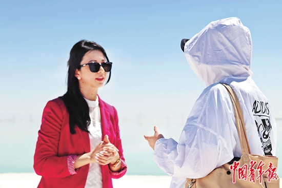 7月21日,青海格尔木,察尔汗盐湖,特立尼达和多巴哥共和国驻华大使刘娜在盐湖湖畔接受中青报·中青网记者采访。中青报·中青网见习记者 余冰玥/摄