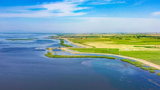 浩浩荡荡的黄河流经内蒙古自治区巴彦淖尔市乌拉特前旗境内后终于平缓下来,在“几字弯”的顶部汇成了一片293平方公里的内蒙古之“海”——乌梁素海,这是地球上同一纬度最大的湿地,素有“塞外明珠”的美誉。