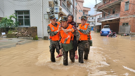 武警泉州支队迅速出动50名兵力、6艘冲锋舟,携带各类装备器材210(件)套,采取摩托化机动方式奔赴灾区,将受困群众转移至安全地区。