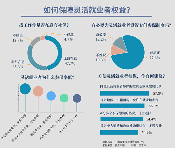 调查中,77.6%的受访者认为有必要为灵活就业者设置专门的参保制度。