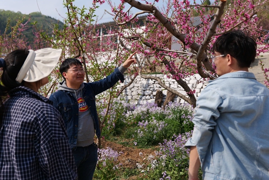 凡皓为游客介绍大桃生长及疏花技术。图片均由受访者提供