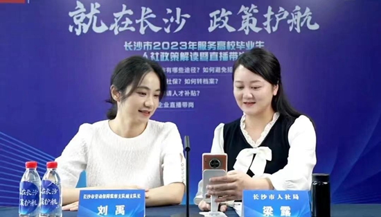 7月19日,湖南长沙,长沙人社直播间政策宣讲第十一期“就在长沙 政策护航”2023年服务高校毕业生人社政策解读暨直播带岗开播。长沙市人社局供图