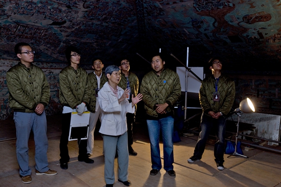 “当我走进敦煌研究院院史陈列馆,当我站在九层楼对面的戈壁上,面对常书鸿先生、段文杰先生,以及老前辈们的墓碑时,当我看到80多岁的樊院长还在为莫高窟忙碌的背影时,景仰之情油然而生,热泪会忍不住往上涌。”长期参与敦煌文物保护工作的北京化工大学教授、博士生导师王明明感慨地说。