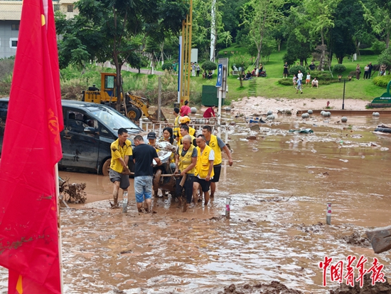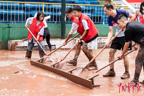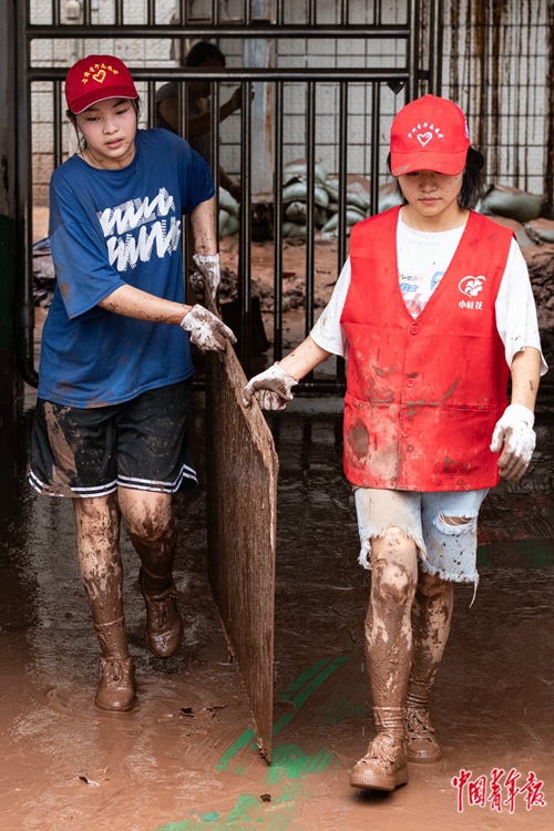 四川古蔺青年志愿者参与灾后清理工作。本组图片由中青报·中青网记者 王鑫昕/摄