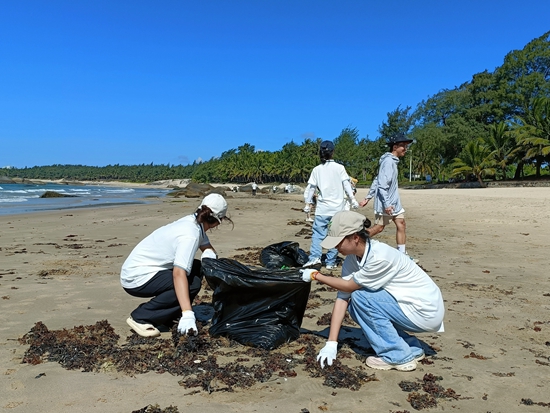 琼台师范学院“海南自贸港建设背景下文昌航空航天基地文化建设与育人情况调研”实践团在火箭发射观看地——文昌淇水湾,同学们开展净滩行动。琼台师范学院供图