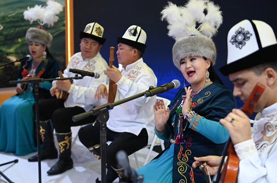 8月17日,演员在交流合作馆新疆维吾尔自治区展区演唱歌曲。当日,第十届中国西部文化产业博览会、2023西安丝绸之路国际旅游博览会在西安国际会展中心开幕。本届西部文博会以“激发产业新动能 书写协作新篇章”为主题,集中展示文旅发展新成果。新华社记者 邹竞一/摄