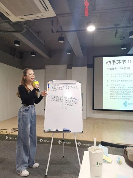 2021年,周沐融在上海开放数据活动现场演讲。受访者供图
