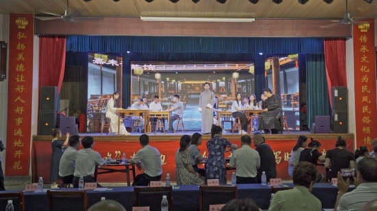 “话剧演出一开始,老板娘喊大家喝茶,演员随意坐下与村民聊天,让我感觉自己也是演员。”村民吕向阳说。7月12日晚上7点,浙江省永康市西溪镇石江村文化礼堂内,一声揽客的吆喝打断村民的私语,话剧《南湖·1921》中的鸳湖旅社、嘉来茶馆、陈公馆三幕情境同时开演,300余位村民纷纷选择在自己喜欢的场景中坐下来,在颇具年代感的茶座中进入话剧。