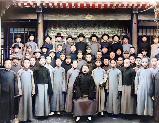 20世纪30年代,富连成“世字科”全体学员在富连成社内合影。