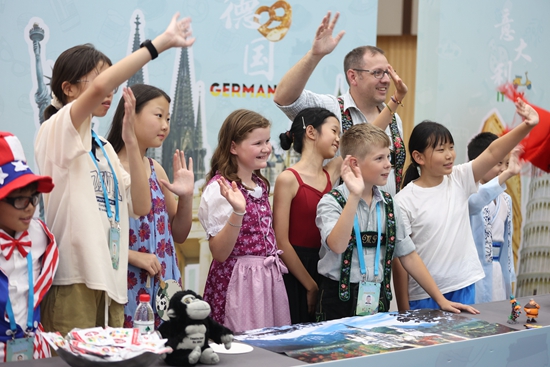 “请把我的歌,带回你的家,请把你的微笑留下……”8月14日,来自中国、美国、意大利、法国、德国、西班牙、葡萄牙、韩国、泰国、越南等10个不同国家和地区的60名孩子聚在一起,他们身着富有本国特色的服装,用中文共同演唱《歌声与微笑》,欢歌笑语声中,一场精彩的文化交流碰撞出新奇的火花,友谊的种子正在悄然萌芽。
