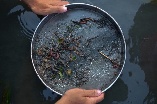 4月6日,海南陵水黎族自治县黎安潟湖,浮游组成员进行底栖生物多样性调查,需要在筛网上一点点淘洗样方内挖出来的泥沙,再将沉积物中的各种底栖动物仔细挑拣至培养皿内,并即刻用酒精固定,带回实验室鉴定物种,用以反映海草床区域生物多样性。
