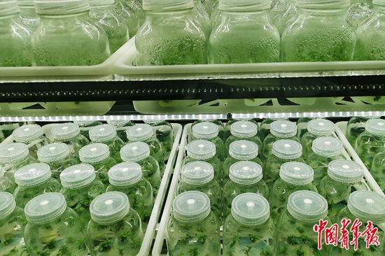 他还与四川一家公司合作,建成静宁首家规模化良种苗木组培脱毒繁育中心,引进“抗重茬、组培、双脱毒”技术。李健介绍,该技术能脱去苹果树常见的六大病毒,扩繁速度也变得更快。“传统用种子种,3年才能长成一棵树苗,现在只需要3个月,幼苗就能拿去嫁接,成活率也更高,基本3年挂果、5年丰产。”