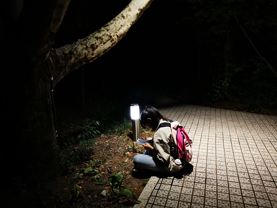 甘洛中学学生借着校园花园里的路灯读书。受访者供图