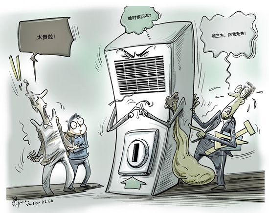 “学生宿舍共享空调3.9元/小时,教室共享空调每台9.9元/小时……”前不久,四川乐山沐川中学2025届学生收到充值续费通知后,部分学生和家长认为“太贵了”。然而,运营商也“叫苦”要10多年才回得到本。(《成都商报》8月30日)漫画:徐简