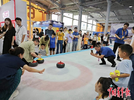 9月2日,2023年中国国际服务贸易交易会开幕首天,体育服务专题展展区的冰球体验展位人气颇高。
